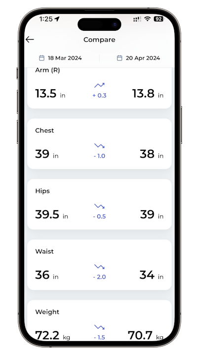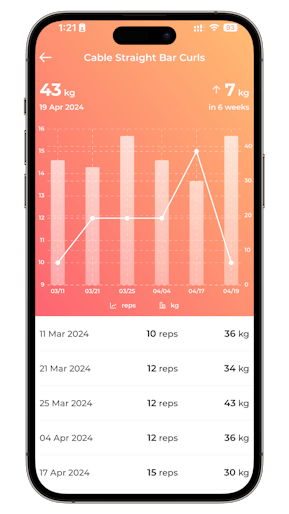 Integrated set, reps, weight & measurements tracking so you can easily visualize your progress, see PRs and keep on crushing your training goals.